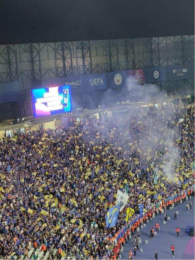 对于今天的伊斯坦布尔,奥尔罕·帕慕克的书名《我的名字叫红》已经不再适用。18年前的那场决赛,对阵双方的主色调都是红色,大耳朵杯上缠绕的红色丝带,也成了AC米兰球迷们的痛苦回忆;18年后的今天,天蓝和蓝黑在看台上交融,蓝黑拥趸在数量上略占优势,这也一如本场比赛的实际场面。遗憾的是,歌声更嘹亮的一方未能迎来庆典,踢得更出色的球队未能取得胜利。国际米兰最终屈居亚军,这是意料之中的结果,但过程比想象中的要残酷得多。
